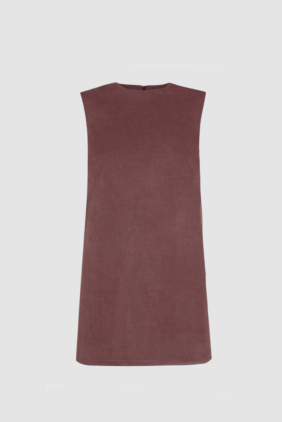 Purple corduroy pinafore dress with a straight, structured cut that flatters the silhouette while offering comfort. Crafted from soft corduroy fabric, it adds a refined and elegant touch to any outfit.